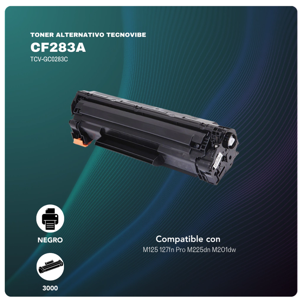 Este Toner Alternativo Tecnovibe CF283A es ideal para mantener la calidad de impresión en sus dispositivos HP. Garantiza un excelente rendimiento y una impresión nítida, a un costo accesible.